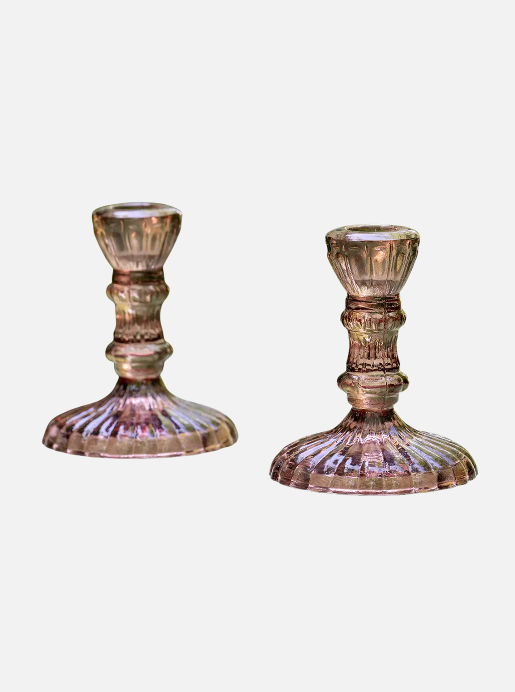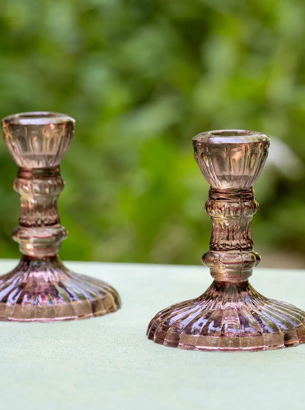 The Amethyst Candlesticks bring a soft, romantic glow to your home with their dusty pink-purple hue and antique-inspired glass details. Sold as a set of two, they add effortless charm to dining tables, mantels, or shelves and pair beautifully with taper candles for cozy, elevated styling.