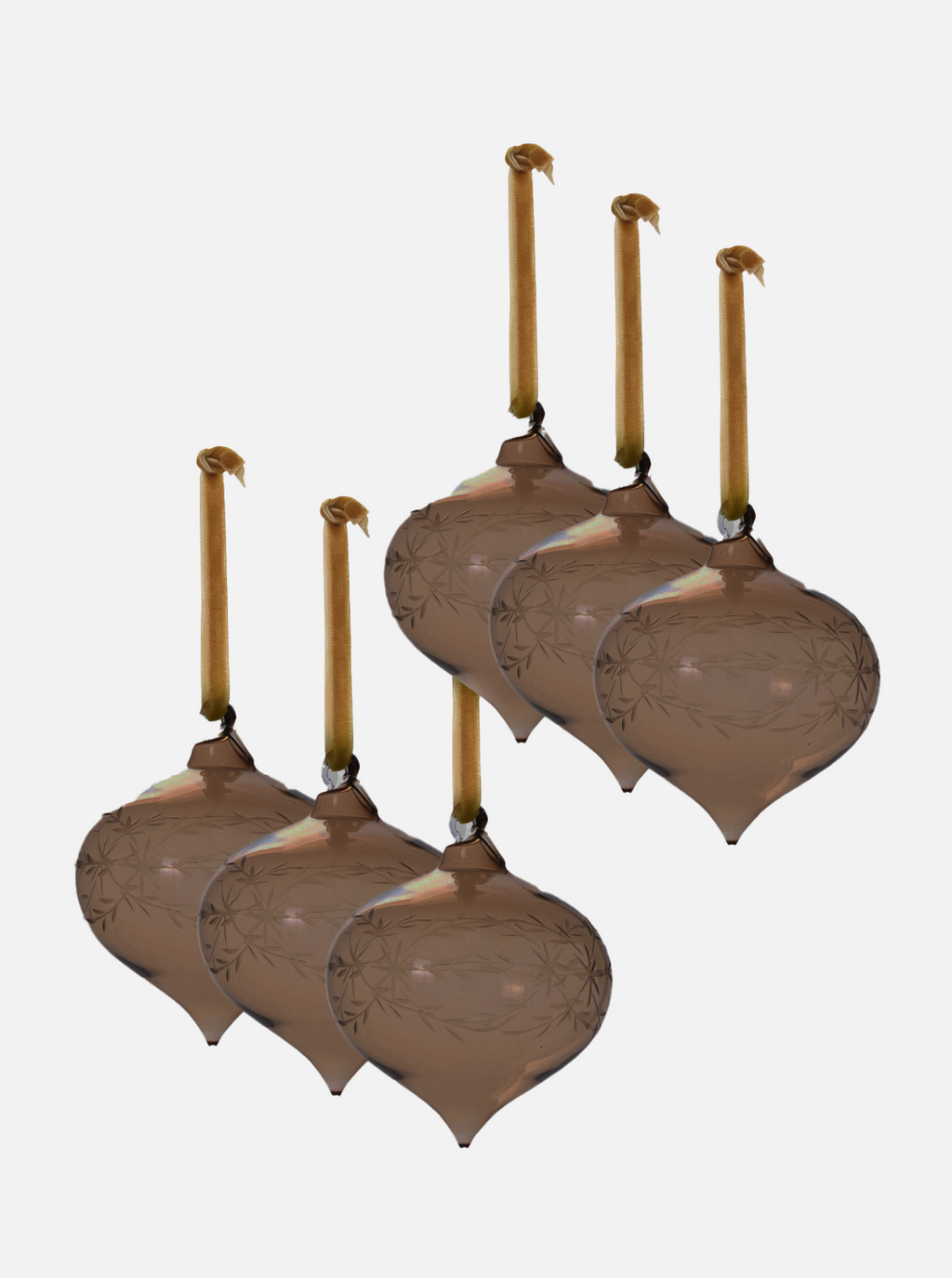 Delicate and elegant, this glass bauble features intricate etched vine detailing for a subtle, sophisticated look. Its color and refined design make it a charming addition to any holiday tree, adding texture and a touch of understated beauty to your seasonal decor.