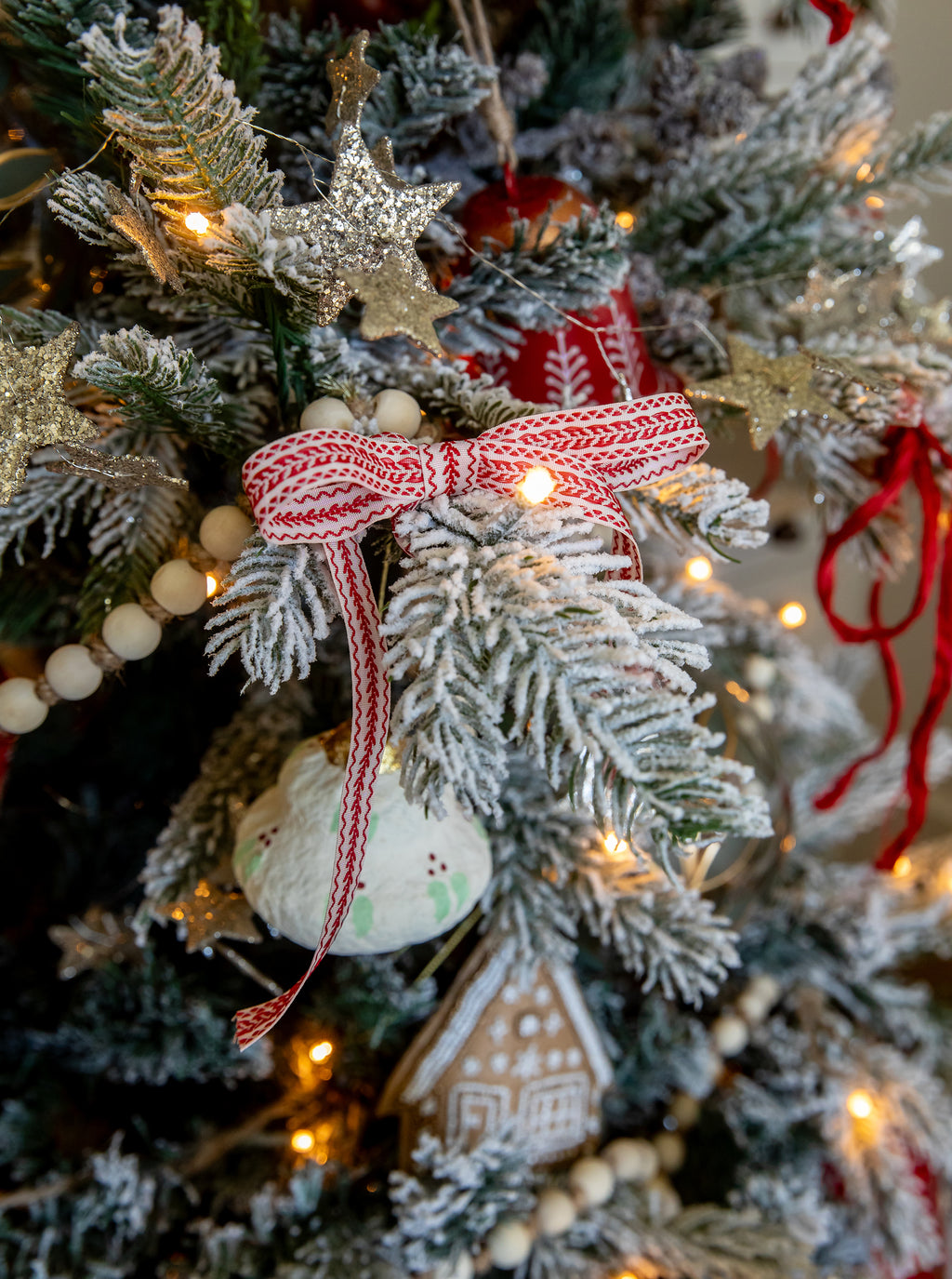 Delicate and detailed, our Red Vine Woven Ribbon adds a charming, vintage-inspired touch to gift wrap, floral arrangements, and holiday crafting. Featuring a soft cream base with intricate red vine embellishments, this 32' yard ribbon comes neatly rolled on a natural wooden spool for easy use and beautiful presentation. A timeless accent for any season.