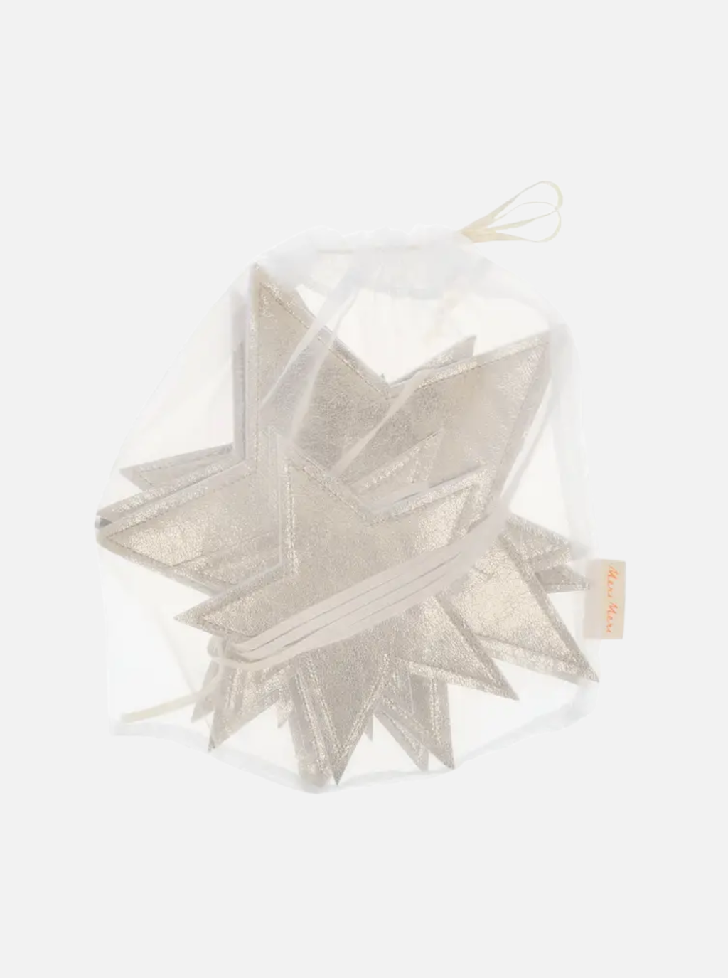 Add a twinkle to any space with this silver star garland. Crafted from sparkling faux leather with a soft, padded finish, it catches the light beautifully for festive charm. Perfect for draping along mantels, staircases, walls, or windows, it’s reusable year after year for effortless style. Comes in a white organza drawstring bag—great for storage or gifting!