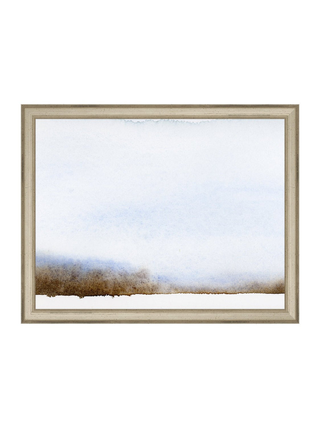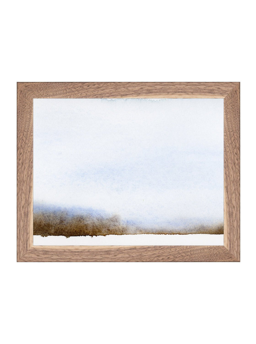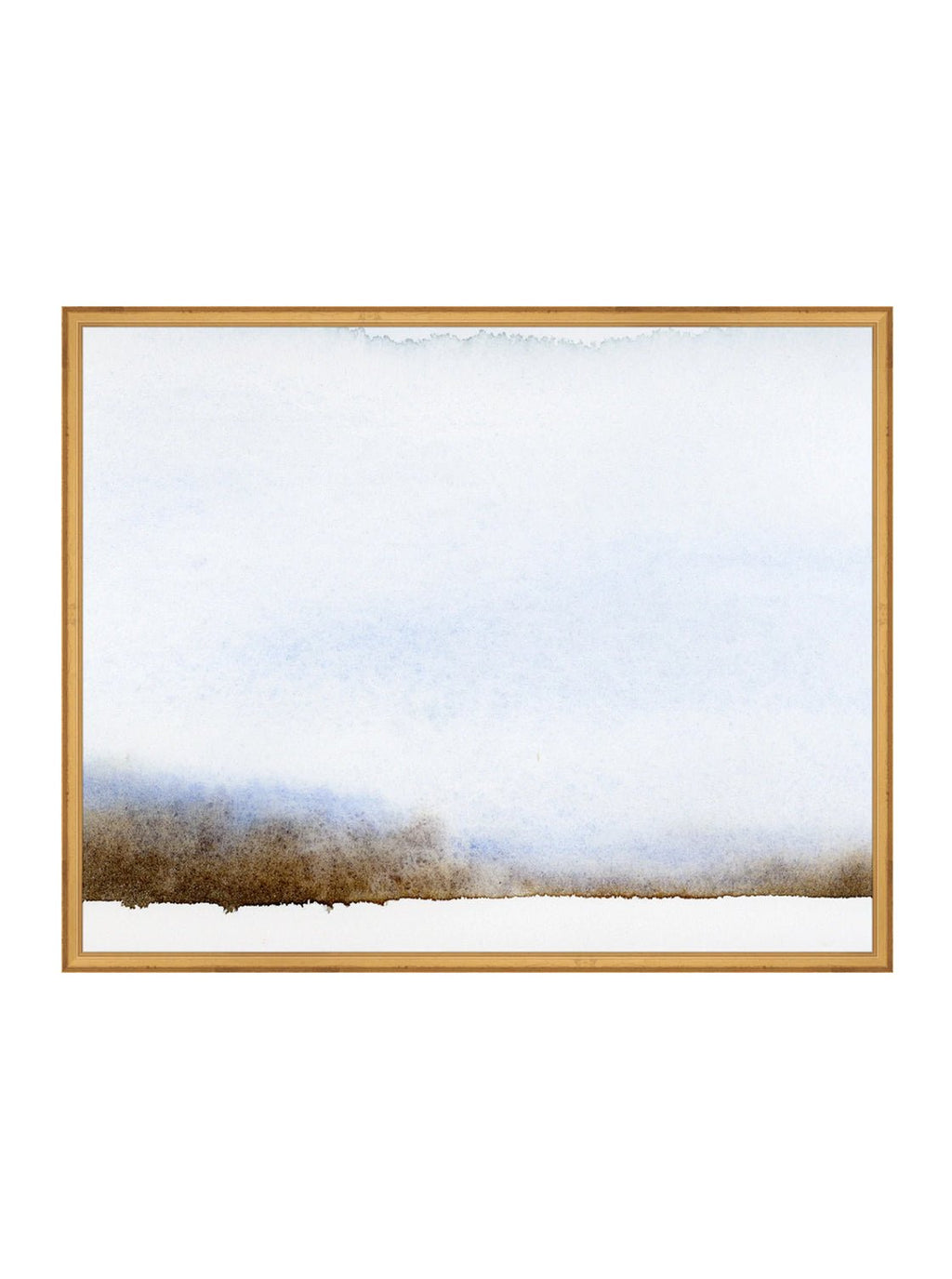 Deep browns converging with the diversity of blue tones in this beautiful painting resemble an open landscape. This brown, light blue and white piece can illuminate a moody room and its contemplation can take you to a peaceful state.